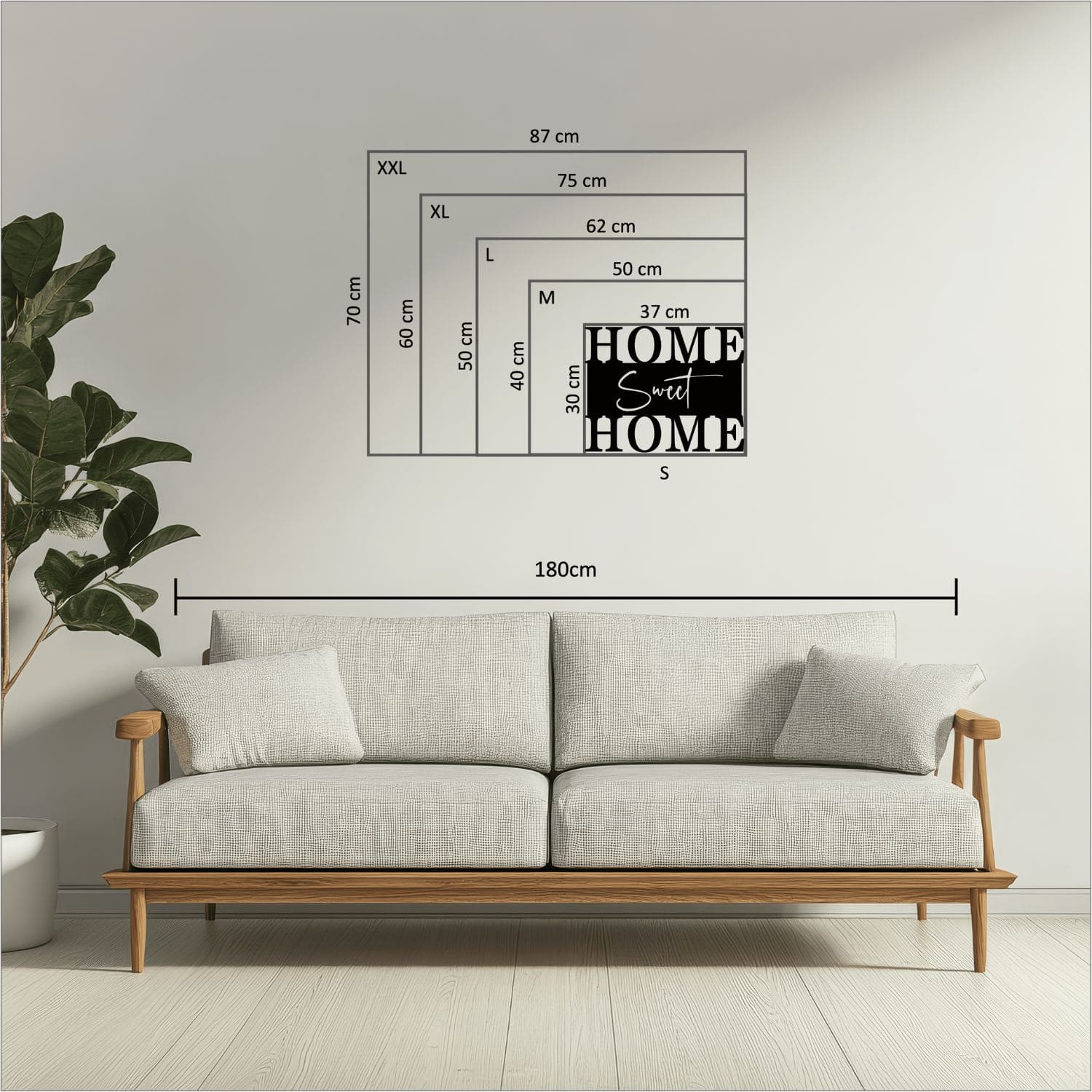Unser "Home Sweet Home"-Schriftzug ist die ideale Bereicherung für Ihre Wohnraumgestaltung. Dieses charmante Dekorstück verleiht Ihrem Zuhause eine gemütliche Atmosphäre und erinnert stets daran, wie süß und einladend Ihr Heim ist.