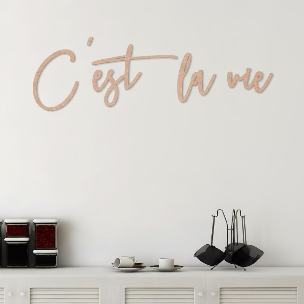 Unser "C'est la vie"-Schriftzug bringt den Hauch von französischer Lebenseinstellung in Ihr Zuhause. Dieses elegante Dekorationsstück verströmt Gelassenheit und erinnert uns daran, dass das Leben so ist, wie es ist. C'est la vie!